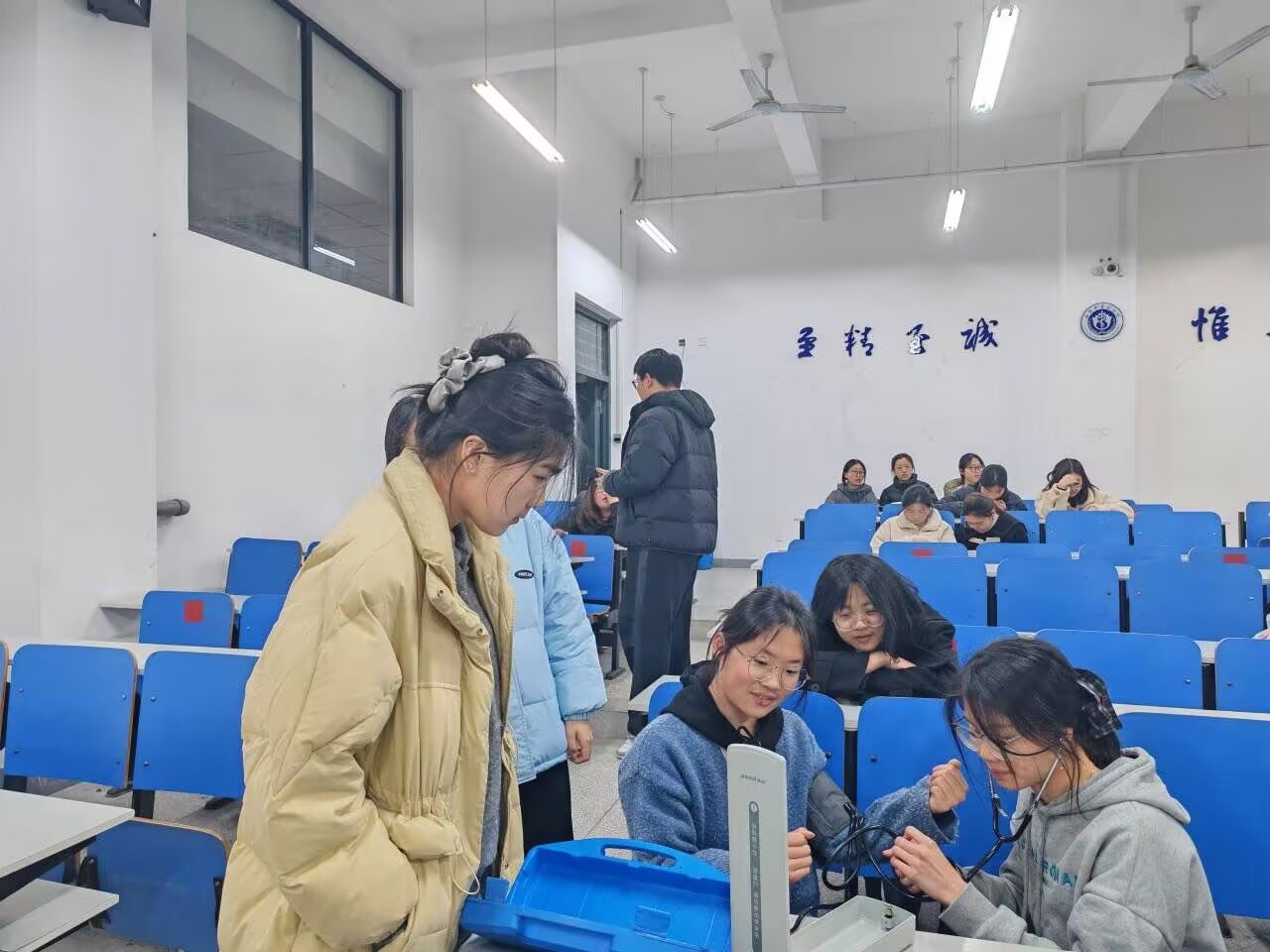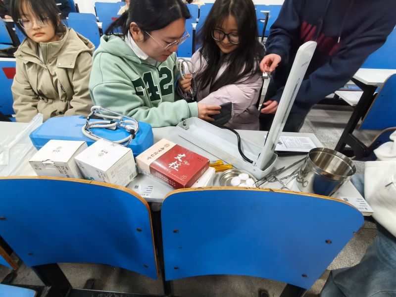 九點整,培訓正式開始。首先進行的是血壓測量教學,有著兩年義診經(jīng)驗的副部長李雯細致講解操作要點:"袖帶下緣要距肘窩2-3厘米,聽診器不能塞在袖帶下面......"社員們兩人一組互相練習,部長們穿梭其間,不時俯身糾正動作。臨床醫(yī)學院大三學生王雪第一次實操就成功測準了同伴的血壓,興奮地說:"原來這里面有這么多學問,手法輕重緩急都很講究!"
