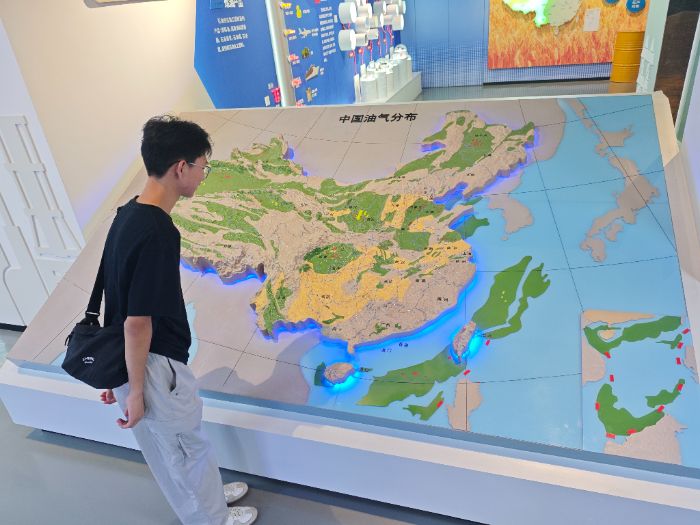 學期內(nèi)的積累為實踐打下堅實基礎(chǔ),暑期伊始,實踐隊首站奔赴中原文化宮,開啟石油文化尋根之旅。踏入文化宮,隊員們跟隨講解員的腳步,在陳列的老照片、鉆機模型、油田開發(fā)史料前駐足。從展示“艱苦創(chuàng)業(yè)”歷程的實物展區(qū),到呈現(xiàn)“智慧轉(zhuǎn)型”成果的科技展板,大家逐一探尋中原油田從勘探開發(fā)到創(chuàng)新發(fā)展的脈絡(luò)——老鉆機模型訴說著初代建設(shè)者的堅守,數(shù)據(jù)圖表展現(xiàn)著油田技術(shù)的迭代升級。隊員們邊聽邊記、不時交流,將書本上抽象的“石油精神”,與中原油田的真實奮斗故事、文化積淀深度聯(lián)結(jié),為后續(xù)實踐與宣講收集到最鮮活的素材。