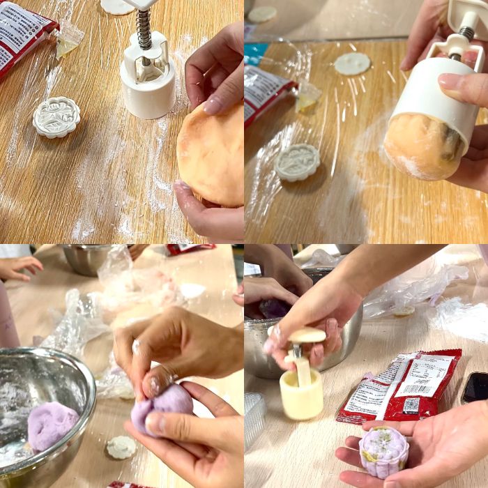 (圖為支部成員正在進(jìn)行月餅壓模 藍(lán)靈巧 供圖)