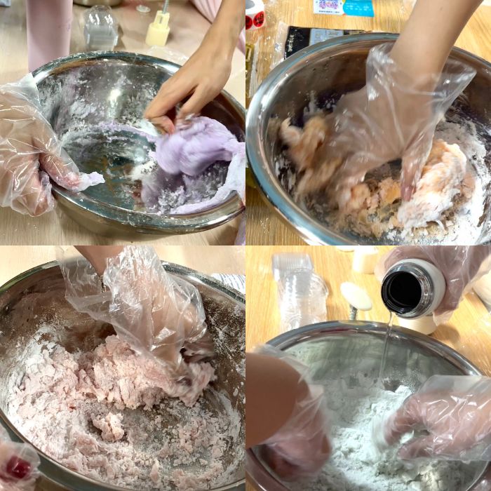 (圖為支部成員認(rèn)真和面 藍(lán)靈巧 供圖)