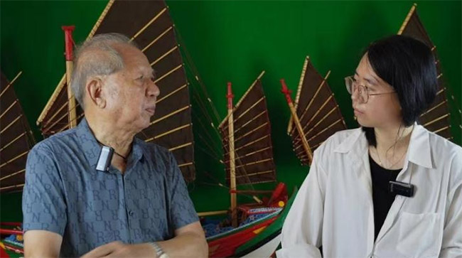 團(tuán)隊(duì)深入惠安大岞漁村,拜訪非遺船模制作技藝傳承人張國(guó)輝先生,聆聽他與福船相伴六十三載的故事,并邀請(qǐng)張先生分享造船工具、船模結(jié)構(gòu)、水密隔艙等知識(shí),以青年之音,記錄即將消逝的海洋記憶。