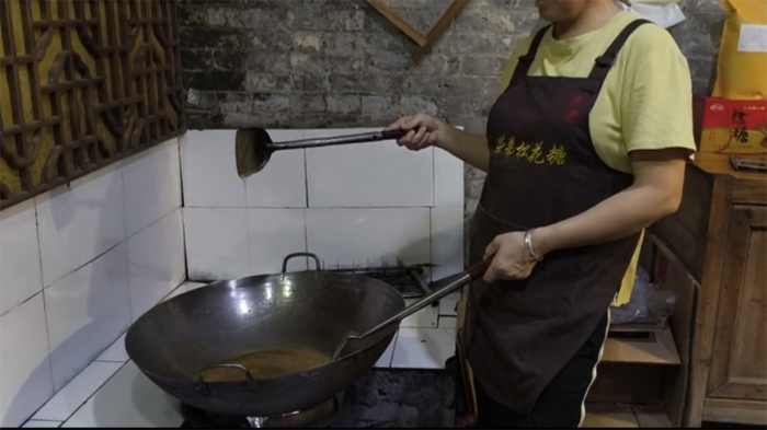 圖為韓師傅示范如何掌控熬糖的火候 田燦 供圖