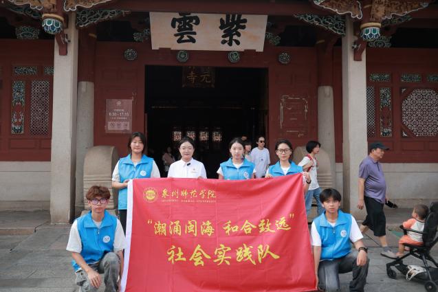 聚焦泉州石刻蘊藏的開放包容的海洋文化基因,實踐隊成員們先后探訪了開元寺、東西塔等歷史遺跡。指尖輕觸紫云屏上斑駁的刻痕,那些深淺不一的紋路里,仿佛還留存著宋元工匠鑿刻時的溫度。目光凝注“僧到赤烏”的古老字跡,,寥寥幾個字卻訴說著佛教東傳與本土文化相遇的千年往事。隊員們在這些歷經(jīng)千年風雨的石刻間深切地領(lǐng)悟其中蘊含的“和而不同”的文明智慧。
