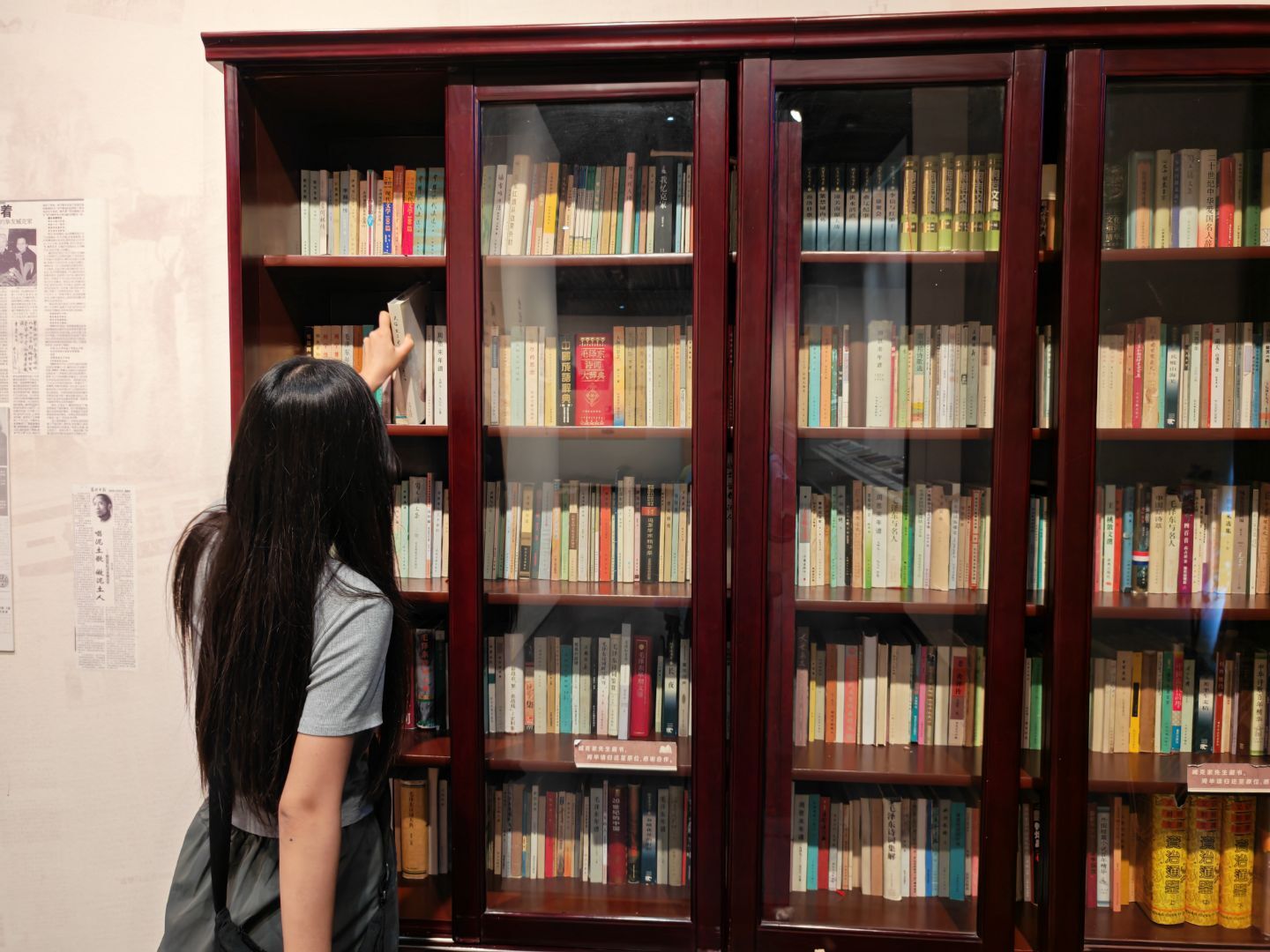“大家看這組書柜的木紋,雖歷經(jīng)數(shù)十年,卻依然能感受到它承載的厚重歲月 —— 這里陳列的 300 余冊(cè)書籍、手稿,都是臧克家先生精心收藏并捐贈(zèng)的珍貴財(cái)富。” 伴隨著紀(jì)念館講解員的介紹,實(shí)踐隊(duì)隊(duì)員們的目光聚焦在展廳中央的深棕色書柜上。“臧克家先生捐贈(zèng)的不僅是書籍,更是精神火種。” 隊(duì)員李同學(xué)感慨道,“作為山大護(hù)理學(xué)子,我們要像先生一樣,將‘服務(wù)社會(huì)、關(guān)愛(ài)生命’的理念融入專業(yè)學(xué)習(xí),以‘燭光’之力傳承教育初心。
