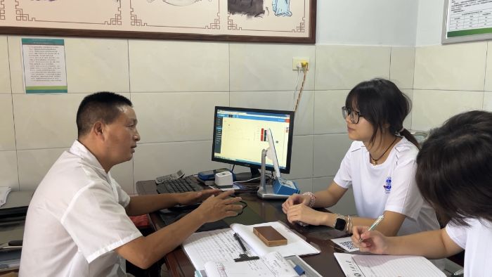 在樂(lè)園村衛(wèi)生室,實(shí)踐隊(duì)成員與有著35年行醫(yī)經(jīng)驗(yàn)的李發(fā)從村醫(yī)進(jìn)行深度訪(fǎng)談。李發(fā)從作為中國(guó)合作醫(yī)療第三代傳承人,肩負(fù)村衛(wèi)生室負(fù)責(zé)人與合作醫(yī)療紀(jì)念館館務(wù)員雙重職責(zé)。李醫(yī)生詳細(xì)介紹了新型農(nóng)村合作醫(yī)療在本村的實(shí)施情況,他表示:我們落實(shí)醫(yī)療保障措施,所有脫貧人口均參加了城鄉(xiāng)居民基本醫(yī)療保險(xiǎn),全村參保率達(dá)到100%,極大減輕了群眾就醫(yī)負(fù)擔(dān)。從日常診療到公共衛(wèi)生服務(wù),李發(fā)從用幾十年的堅(jiān)守詮釋了基層醫(yī)者的責(zé)任與擔(dān)當(dāng),為醫(yī)學(xué)生樹(shù)立了扎根基層、服務(wù)百姓的榜樣。
