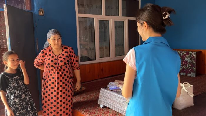 實踐隊隊員們走進了孩子們的家中,與家長細致交流普通話使用情況。不少孩子由爺爺奶奶照料,長輩們雖多用維吾爾語交流,但樸實的話語里滿是真摯,是那份對孩子的疼愛與期盼。走訪中還發(fā)現(xiàn),部分家庭因客觀條件面臨生活困難。對此。實踐隊不僅耐心記錄孩子們的學習需求,為困難家庭送去了精心準備的慰問品。