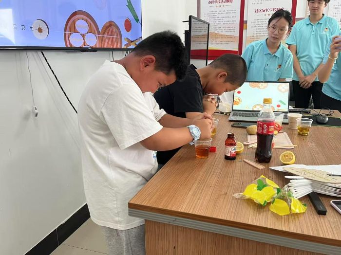 在知識宣講與情景教學基礎上,實踐團開展食品科學趣味實驗。設計“蛋白質(zhì)的秘密”“天然指示劑的奇妙世界”主題實驗,演示牛奶與酸性飲品混合凝聚等現(xiàn)象,講解科學原理。設置“小小科學家”互動環(huán)節(jié),指導小朋友動手實驗、觀察記錄、自主探究,激發(fā)其對食品科學的興趣,培養(yǎng)科學思維與實踐能力,形成學習閉環(huán)。