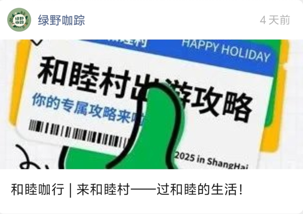 同時(shí),團(tuán)隊(duì)注冊運(yùn)營“綠野咖蹤”微信公眾號,整合村咖地圖、周邊業(yè)態(tài)、鄉(xiāng)村文化故事等信息,發(fā)布《東厙咖行|在青浦東厙,把日子過成心里的模樣》《和睦咖行|來和睦村——過和睦的生活!》等3篇鄉(xiāng)村旅游攻略推文,累計(jì)瀏覽量超500人次,點(diǎn)贊轉(zhuǎn)發(fā)量破百,成為城市游客了解鄉(xiāng)村的重要窗口。目前已有2家村咖主動合作張貼公眾號二維碼,形成“到店消費(fèi)—線上導(dǎo)流—全域體驗(yàn)”的服務(wù)閉環(huán)。