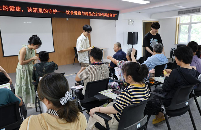 2025年8月30日,宣講當(dāng)日,隊(duì)員們清晨即采購健康小禮品,于下午準(zhǔn)時(shí)抵達(dá)社區(qū)活動(dòng)室,受到居民熱情歡迎,F(xiàn)場(chǎng)通過PPT講解、傳單發(fā)放、實(shí)物對(duì)比和互動(dòng)答疑等多種形式,圍繞飲食與用藥安全等現(xiàn)實(shí)問題開展科普。在互動(dòng)答疑環(huán)節(jié),居民們踴躍提問,圍繞“高血壓該少吃哪些調(diào)味品”“降糖藥和保健品能否同服”等生活中經(jīng)常遇到的實(shí)際問題與隊(duì)員們深入交流,F(xiàn)場(chǎng)氣氛熱烈,充滿了溫馨與信任。隊(duì)員們耐心傾聽、細(xì)致解答,用通俗易懂的語言化解一個(gè)個(gè)健康疑惑,真正實(shí)現(xiàn)了醫(yī)學(xué)知識(shí)從課堂到社區(qū)、從理論到實(shí)踐的暖心傳遞。