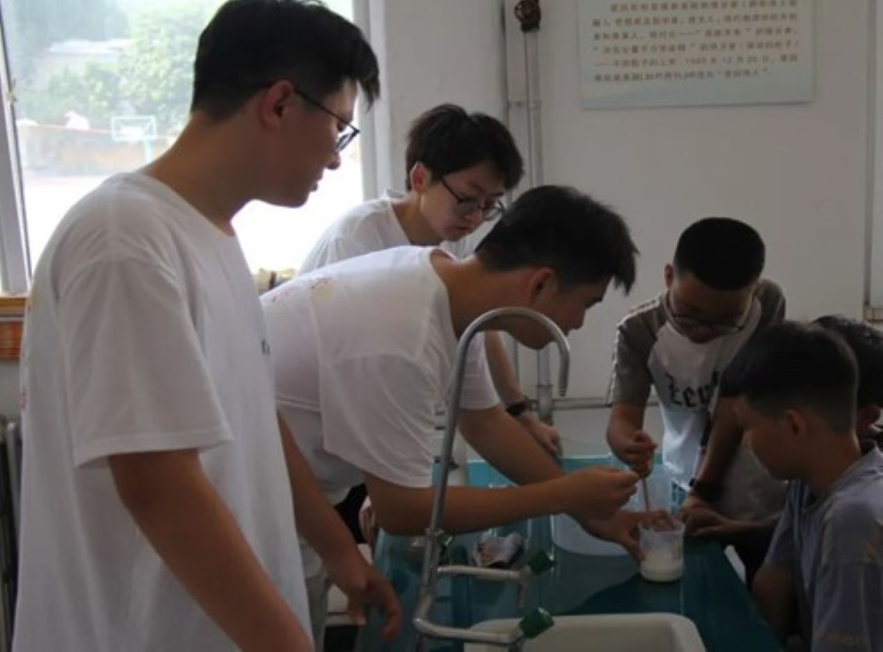 圖為動(dòng)力系志愿者帶領(lǐng)同學(xué)們制作“非牛頓流體”實(shí)驗(yàn)。