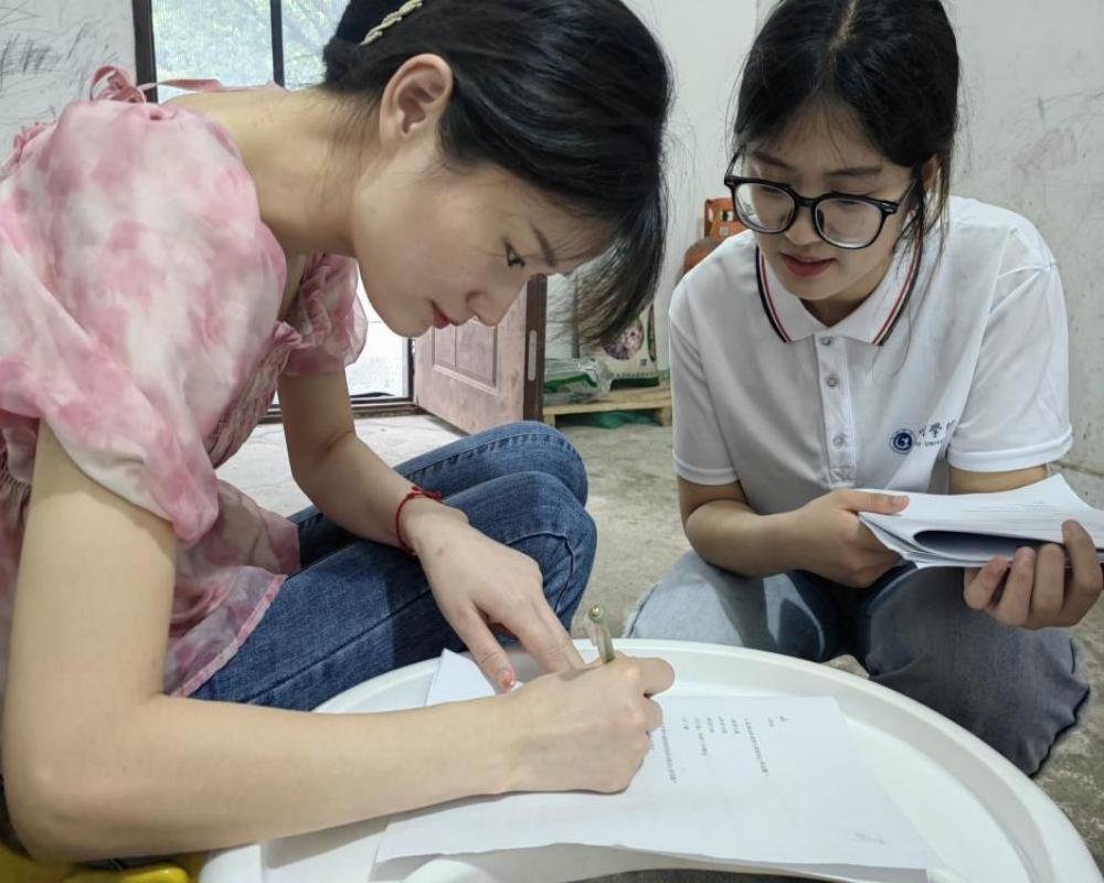 圖為實(shí)踐隊(duì)員進(jìn)入居民家中進(jìn)行問卷調(diào)查。中國青年網(wǎng)通訊員 孔維佳 供圖