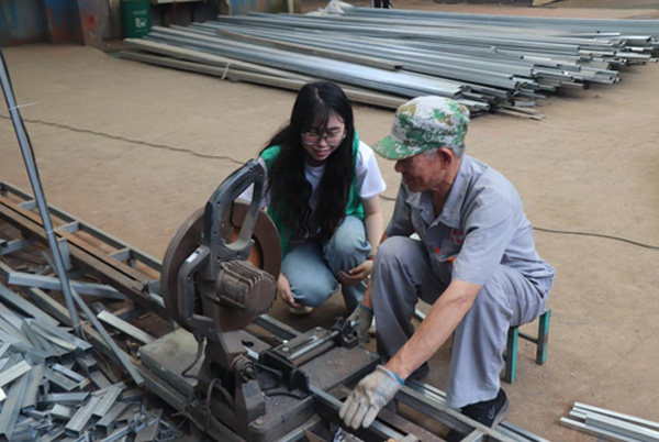為增加對(duì)智能垃圾分類設(shè)施制造過(guò)程的了解,企業(yè)負(fù)責(zé)人還帶領(lǐng)實(shí)踐團(tuán)成員對(duì)廠內(nèi)生產(chǎn)區(qū)進(jìn)行了參觀。生產(chǎn)區(qū)內(nèi)工人們有條不紊地進(jìn)行材料切割、焊裝等作業(yè),以高標(biāo)準(zhǔn)嚴(yán)要求對(duì)待每個(gè)零部件的生產(chǎn)。在確保安全的情況下,實(shí)踐團(tuán)成員走近了車間工人,近距離感受一道道工序的魅力,并對(duì)部分生產(chǎn)工人進(jìn)行了簡(jiǎn)單采訪。工人師傅們積極地向?qū)嵺`團(tuán)成員介紹了工作內(nèi)容與生產(chǎn)活動(dòng),字里行間都充滿了對(duì)工作的熱愛(ài)之情、對(duì)從事制造垃圾分類設(shè)施的驕傲之情。實(shí)踐團(tuán)成員最后采訪的是一位老師傅,簡(jiǎn)單了解后成員們得知師傅已經(jīng)從事這份工作十余年,但他從不感到枯燥,有的只是十年如一日的熱情與認(rèn)真,工匠精神在這位老師傅身上體現(xiàn)的淋漓盡致。老師傅表示能為城市綠化做一份貢獻(xiàn)他感到非常自豪。