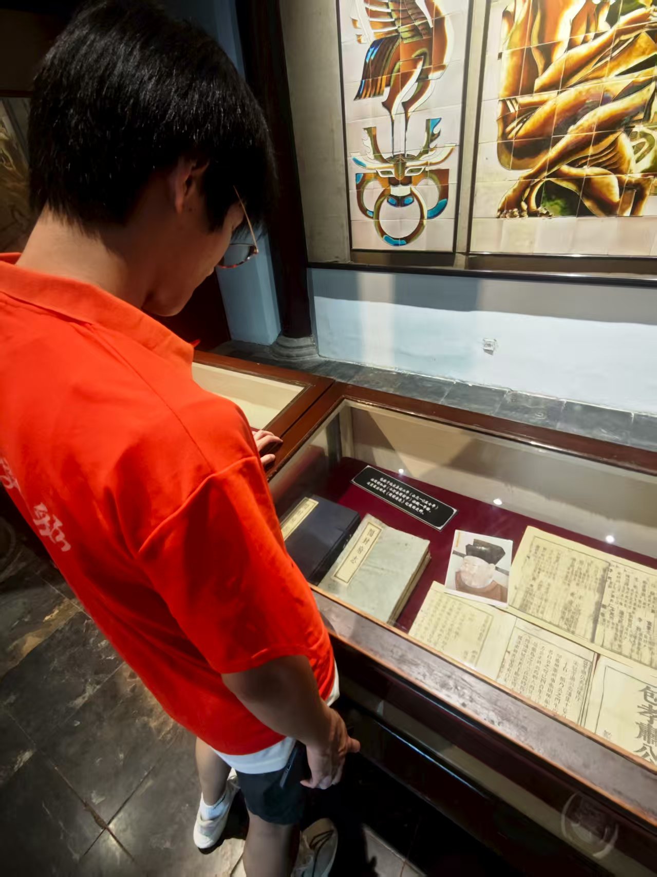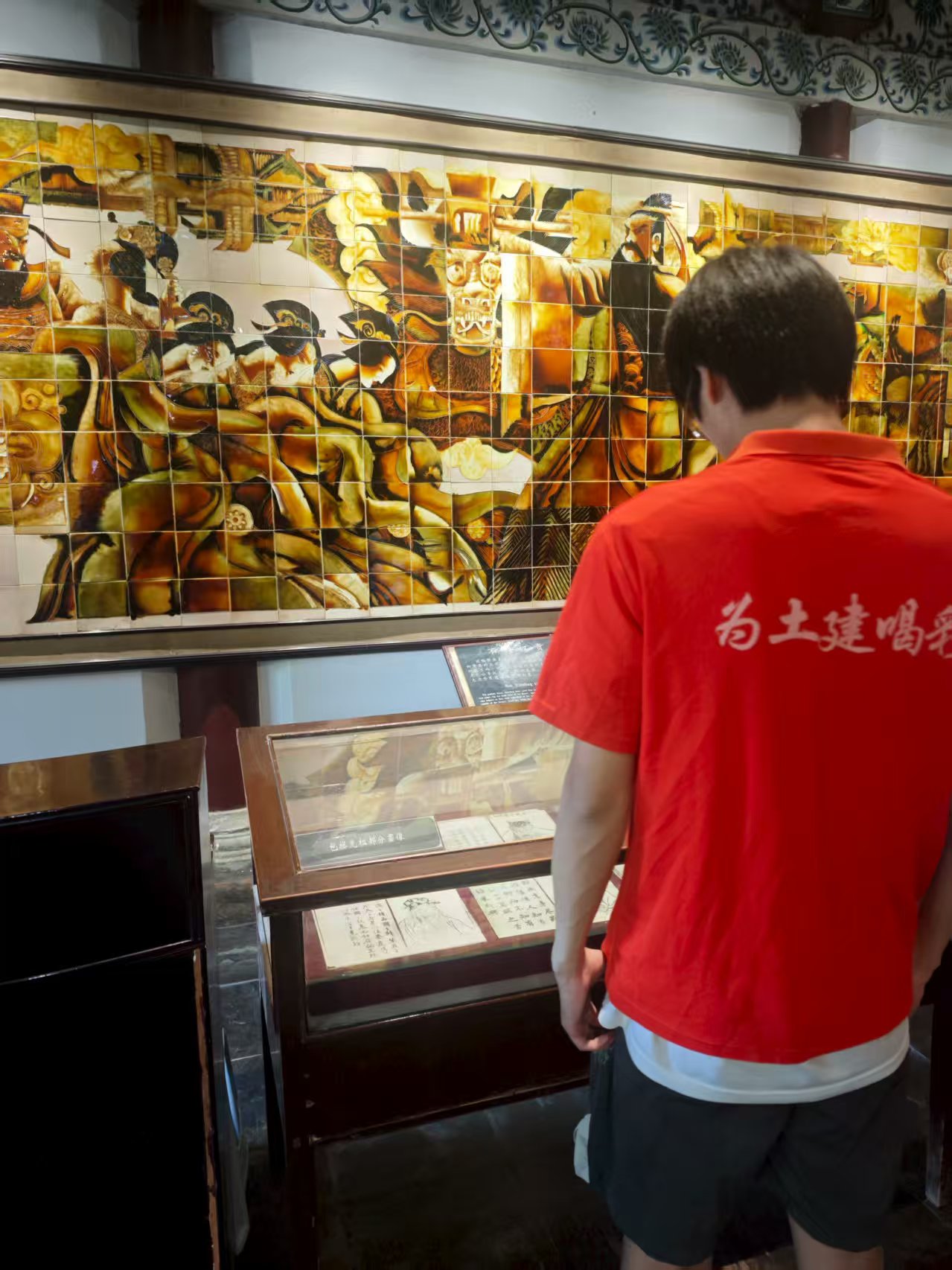 圖為蒲公英實踐團隊隊員觀看包公祠簡介。 胡浩然 攝