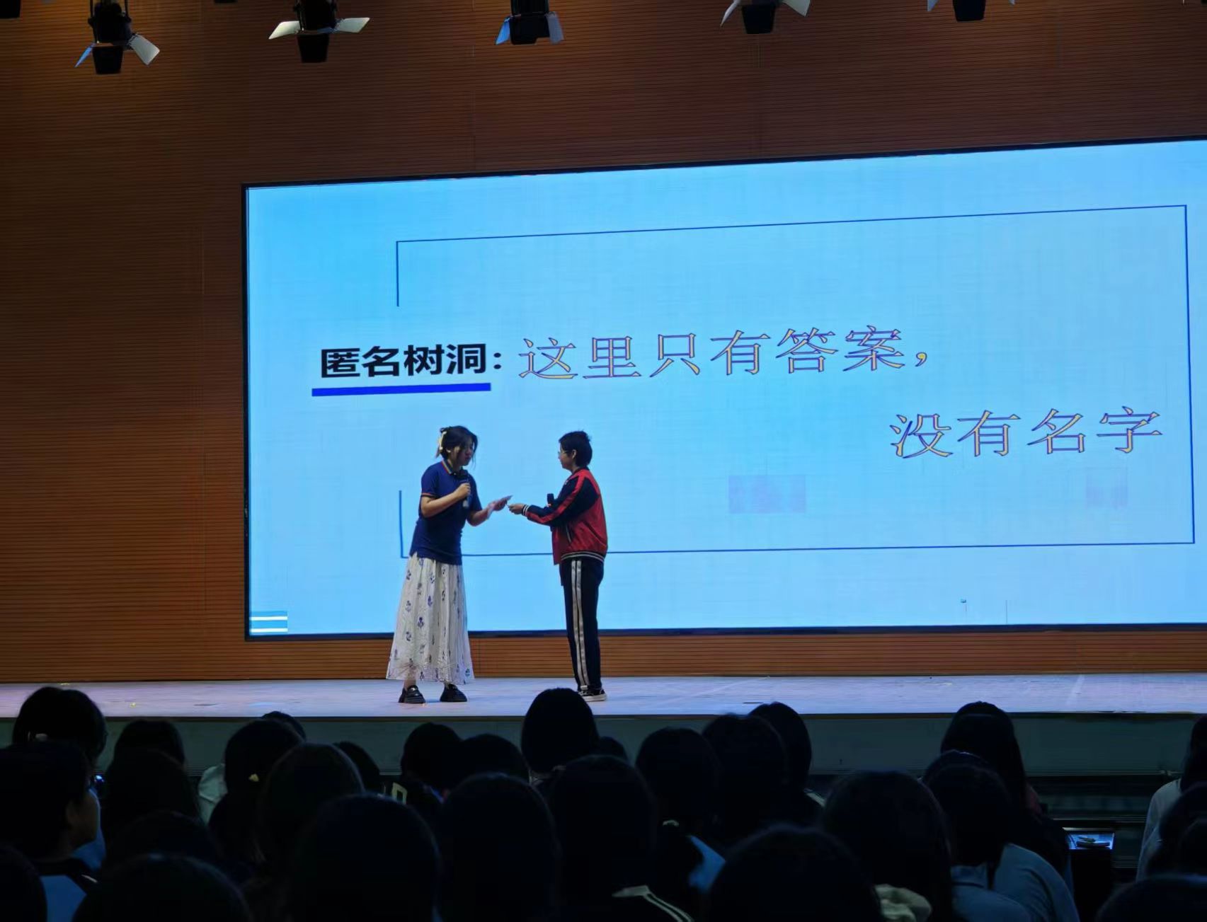 女生場里,宣講人石秀珍以溫柔專業(yè)的講述,構(gòu)建涵蓋成長發(fā)育、學(xué)業(yè)調(diào)節(jié)、自我保護(hù)的知識體系,消除學(xué)生對身體變化的恐懼。“匿名樹洞”讓羞澀學(xué)生得以傾訴,上臺分享環(huán)節(jié)中,同學(xué)們踴躍參與,小禮品發(fā)放推動全員投入。