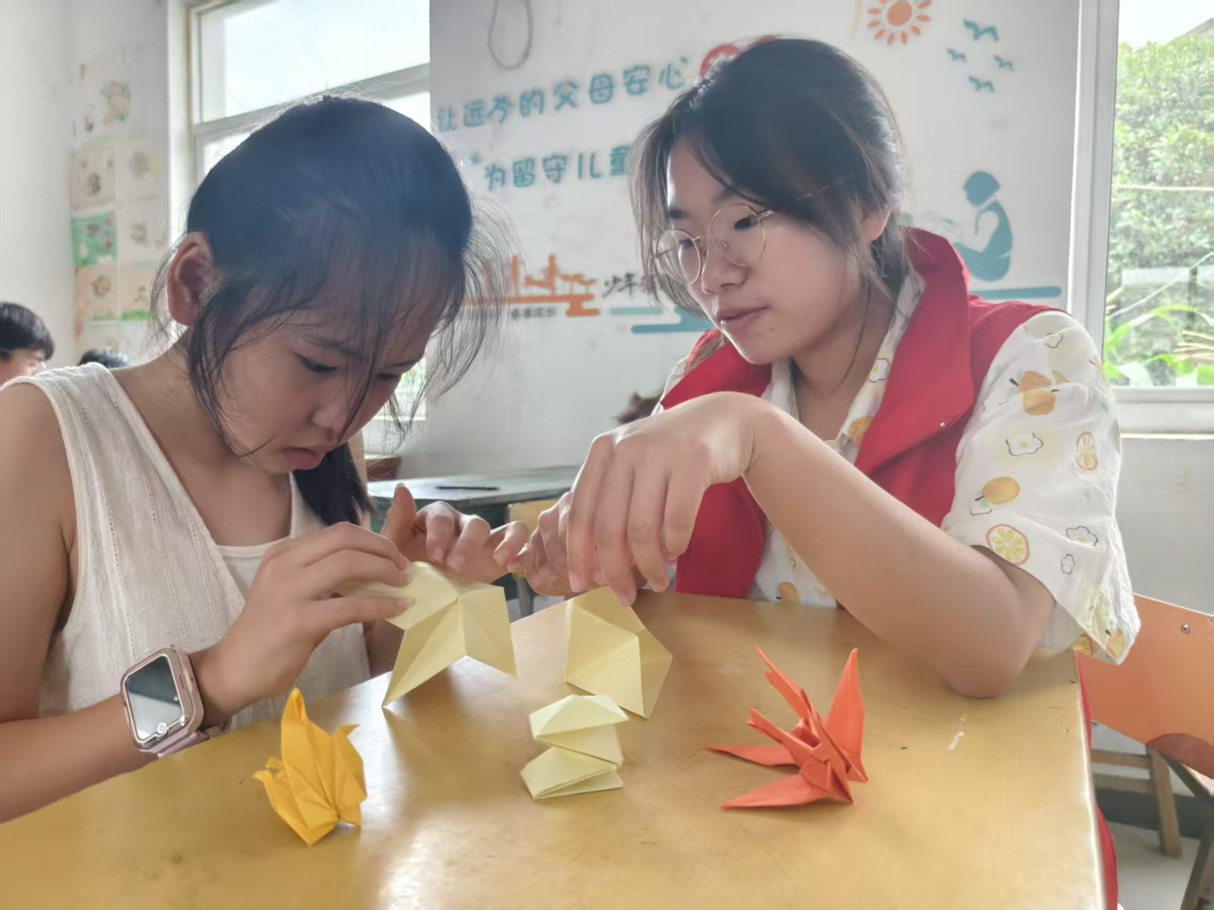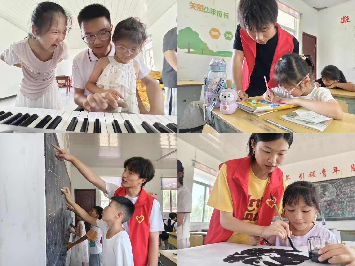 實(shí)踐團(tuán)聚焦孩子成長(zhǎng)需求,打造多元課堂。音樂(lè)課堂上,志愿者手把手教孩子們彈奏電子琴,讓靈動(dòng)音符在指尖跳躍,開(kāi)啟藝術(shù)感知之門;國(guó)畫(huà)課中,志愿者示范運(yùn)筆用墨,帶領(lǐng)孩子領(lǐng)略傳統(tǒng)水墨韻味,在宣紙上描繪童真世界;課業(yè)輔導(dǎo)時(shí),志愿者耐心答疑解惑,助力孩子鞏固知識(shí)、攻克難題,讓學(xué)習(xí)更具溫度。從藝術(shù)啟蒙到知識(shí)鞏固,每一堂課都凝聚著志愿者的用心,成為孩子們暑期難忘的成長(zhǎng)養(yǎng)分。