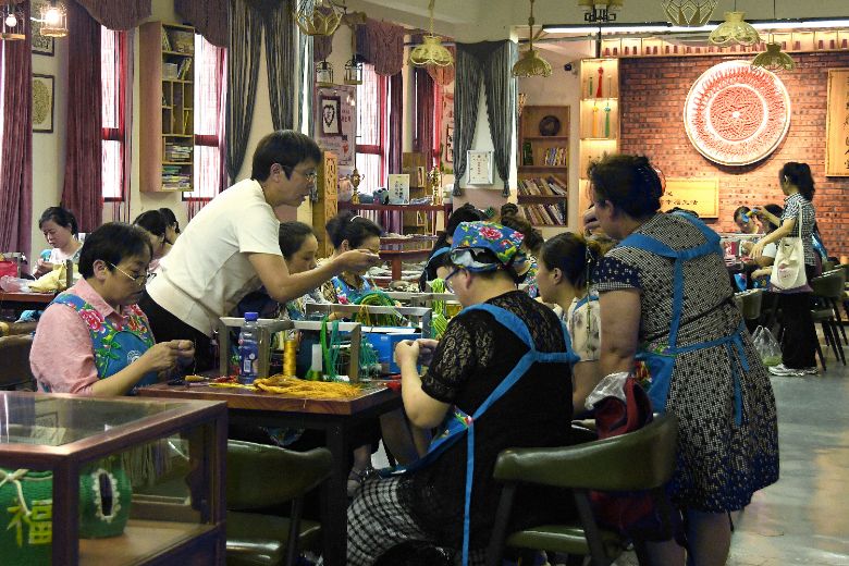涪州結繩代表性傳承人胡饒通過創(chuàng)立中華傳統(tǒng)文化企業(yè)、國潮文創(chuàng)品牌,帶領勤勞智慧的涪州結繩巧娘,傳播中國結繩文化,將家族傳承的“指尖記憶”變成福澤一方的“指尖經濟”。