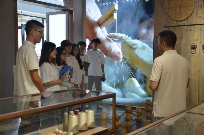 在絲綢公司,同學們走進蠶桑文化館,聆聽絲綢歷史講解,欣賞精美絲綢制品,體驗非遺技藝的傳承與創(chuàng)新。公司還展示了其人才公寓和員工福利,體現(xiàn)出企業(yè)對人才引進的重視與投入。