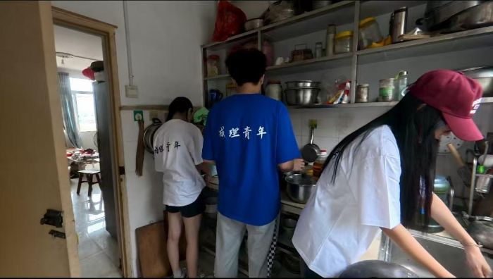 (圖為實踐團成員幫老人打掃房間 楊澤屹 許健樂 供圖)