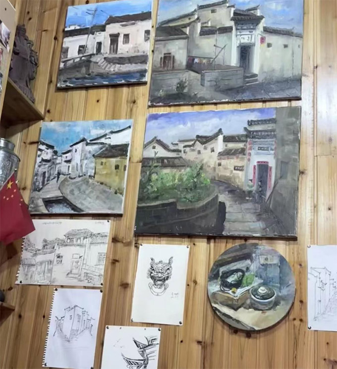 宏村寫生展示(南京航空航天大學鄭文淑攝)