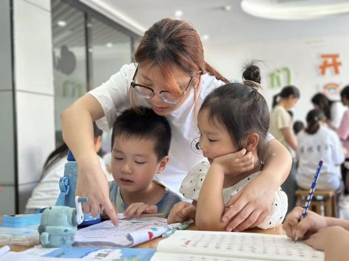 圖為團(tuán)隊成員認(rèn)真輔導(dǎo)小朋友學(xué)業(yè)。呂怡瀟 供圖