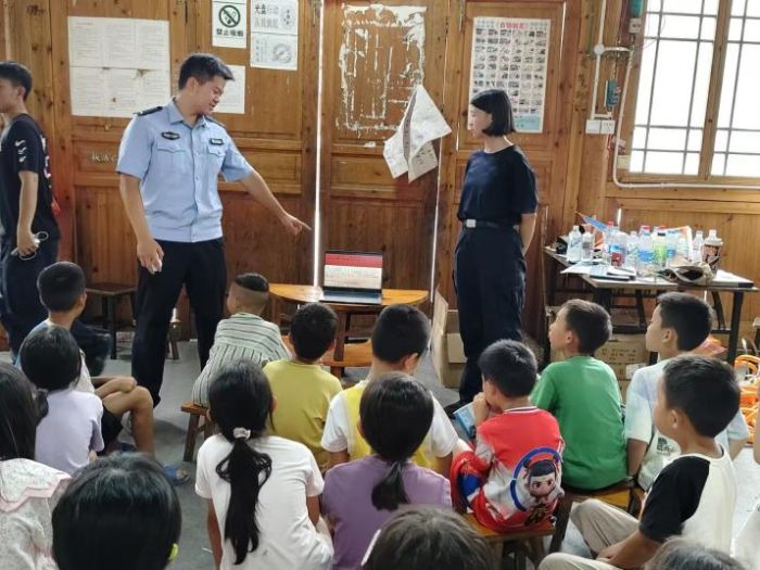 鄉(xiāng)村地區(qū)地形復(fù)雜、基礎(chǔ)設(shè)施相對(duì)薄弱,孩子們?cè)谌粘I舷聦W(xué)、戶外活動(dòng)中面臨溺水、拐騙、網(wǎng)絡(luò)陷阱等多重安全風(fēng)險(xiǎn)。實(shí)踐團(tuán)從“游玩、出行、網(wǎng)絡(luò)”三個(gè)維度構(gòu)建安全防護(hù)體系,通過情景模擬、現(xiàn)場(chǎng)教學(xué)、互動(dòng)問答等形式,將安全知識(shí)轉(zhuǎn)化為孩子們能理解、會(huì)運(yùn)用的自我保護(hù)技能,幫助他們識(shí)別風(fēng)險(xiǎn)、規(guī)避危險(xiǎn)。