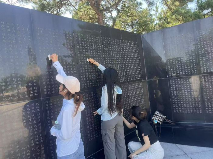 在英烈館“英名墻”前,團(tuán)隊(duì)成員自發(fā)拿起抹布,輕輕擦拭鐫刻著“劉”姓烈士姓名的墻面。劉杉杉同學(xué)輕聲念出一個(gè)個(gè)陌生卻莊嚴(yán)的名字,感慨地說:“他們可能是我的同鄉(xiāng)、同族,甚至可能是我的祖輩。”這一刻,歷史不再是課本上的文字,而是血脈相連的記憶,是激勵(lì)我們前行的精神火種。