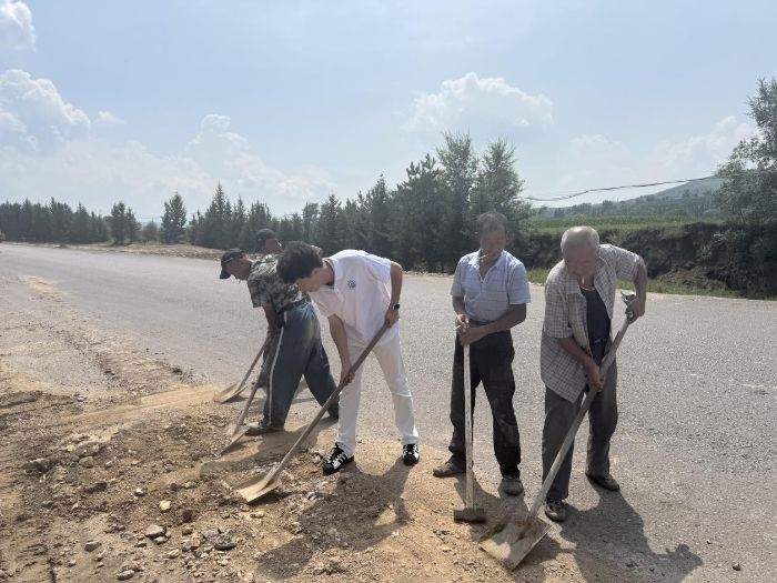 隨后,唐建鑫拿起鐵鍬,與伯伯們一起投入到火熱的工作中。那一刻,伯伯們佝僂的身
