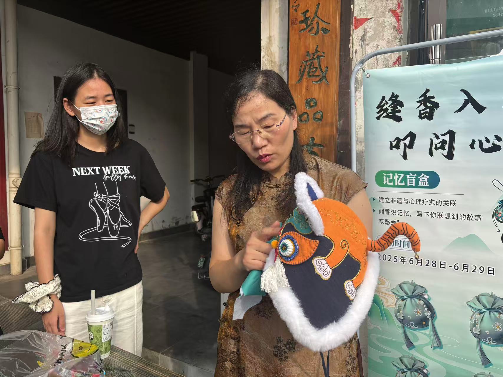 9月初,實(shí)踐團(tuán)前往隋唐古鎮(zhèn),參與楊家香包、虎頭帽非遺傳承人專(zhuān)題分享會(huì)。會(huì)上,傳承人結(jié)合自身從業(yè)經(jīng)歷與群眾反饋,詳細(xì)講述兩項(xiàng)非遺對(duì)情緒調(diào)節(jié)、文化認(rèn)同的實(shí)際影響:“很多體驗(yàn)者說(shuō),穿針引線(xiàn)做香包時(shí),心里的煩躁會(huì)慢慢平復(fù);家長(zhǎng)給孩子戴虎頭帽時(shí),會(huì)主動(dòng)了解背后的吉祥寓意,這讓傳統(tǒng)文化的根扎得更牢。”