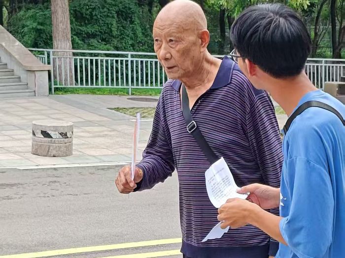 圖為實(shí)踐團(tuán)成員采訪老黨員的革命感悟 錢寧盈 供圖