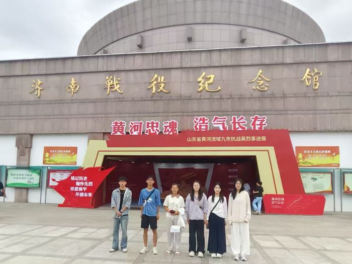 圖為實(shí)踐團(tuán)成員在濟(jì)南戰(zhàn)役紀(jì)念館前合影 錢寧盈 供圖
