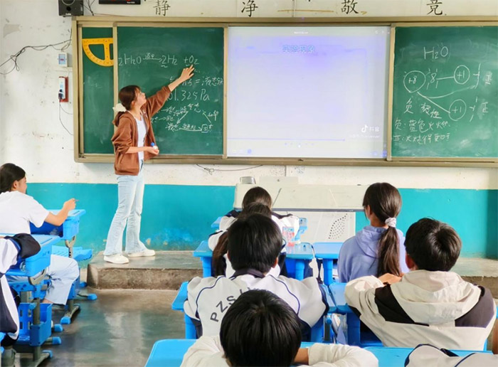實(shí)踐團(tuán)的成員們調(diào)查問卷、談訪交流,實(shí)際分析舊營鄉(xiāng)中學(xué)科普教育資源數(shù)字化現(xiàn)狀與教學(xué)設(shè)施等情況作為教學(xué)活動(dòng)的第一手材料,針對(duì)性的進(jìn)行靈活調(diào)整課程和方法,更充分有效地引導(dǎo)學(xué)生探索未知,也剛好的走近孩子們,走以踔厲奮發(fā)、走向初心使命……支教隊(duì)員們發(fā)揮專業(yè)特長(zhǎng),開設(shè)了計(jì)算機(jī)基礎(chǔ)、科普實(shí)驗(yàn)等音體美一系列豐富的課程。