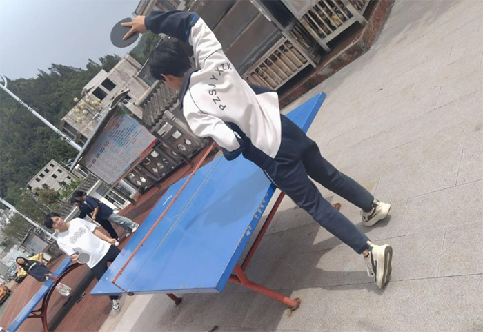 。▓D為隊(duì)員吳山奇和同學(xué)們打乒乓球通訊員宋聚熒)