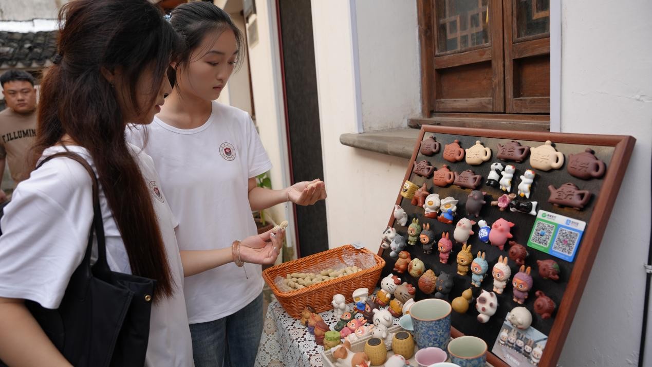 從古老的手工作坊走向現(xiàn)代的街市,實(shí)踐團(tuán)成員來(lái)到古南街實(shí)地考察。古南街始于宋,因蜀山陶土聚匠人成制陶商街;明清到達(dá)黃金時(shí)代。實(shí)踐團(tuán)成員走訪了大師故居、手工作坊,還有文創(chuàng)店等新的商業(yè)模式。實(shí)踐團(tuán)成員還走訪了1958年成立現(xiàn)在已經(jīng)從紫砂壺制作工廠轉(zhuǎn)型為文旅景區(qū)的陶二廠。陶二廠既保留舊窯爐講述歷史,也設(shè)置了現(xiàn)代化展廳陳列紫砂文創(chuàng)。古老的紫砂文化在新時(shí)代也滋養(yǎng)著丁蜀鎮(zhèn)的文化與經(jīng)濟(jì),迸發(fā)強(qiáng)勁創(chuàng)新活力。實(shí)踐團(tuán)在丁蜀鎮(zhèn)建立長(zhǎng)效機(jī)制,與前墅村、三洞橋村等村落建立長(zhǎng)期合作關(guān)系;谡{(diào)研成果和當(dāng)?shù)匚幕Y源,實(shí)踐團(tuán)成員們?yōu)楫?dāng)?shù)厣啼佁峁┌l(fā)展和創(chuàng)新意見(jiàn),比如多與紫砂陶瓷文化IP綁定,在主流短視頻平臺(tái)上開(kāi)設(shè)團(tuán)購(gòu)等,加大宣傳力度。定期組織學(xué)生開(kāi)展文化調(diào)研和實(shí)踐活動(dòng),持續(xù)為鄉(xiāng)村文化建設(shè)提供支持。