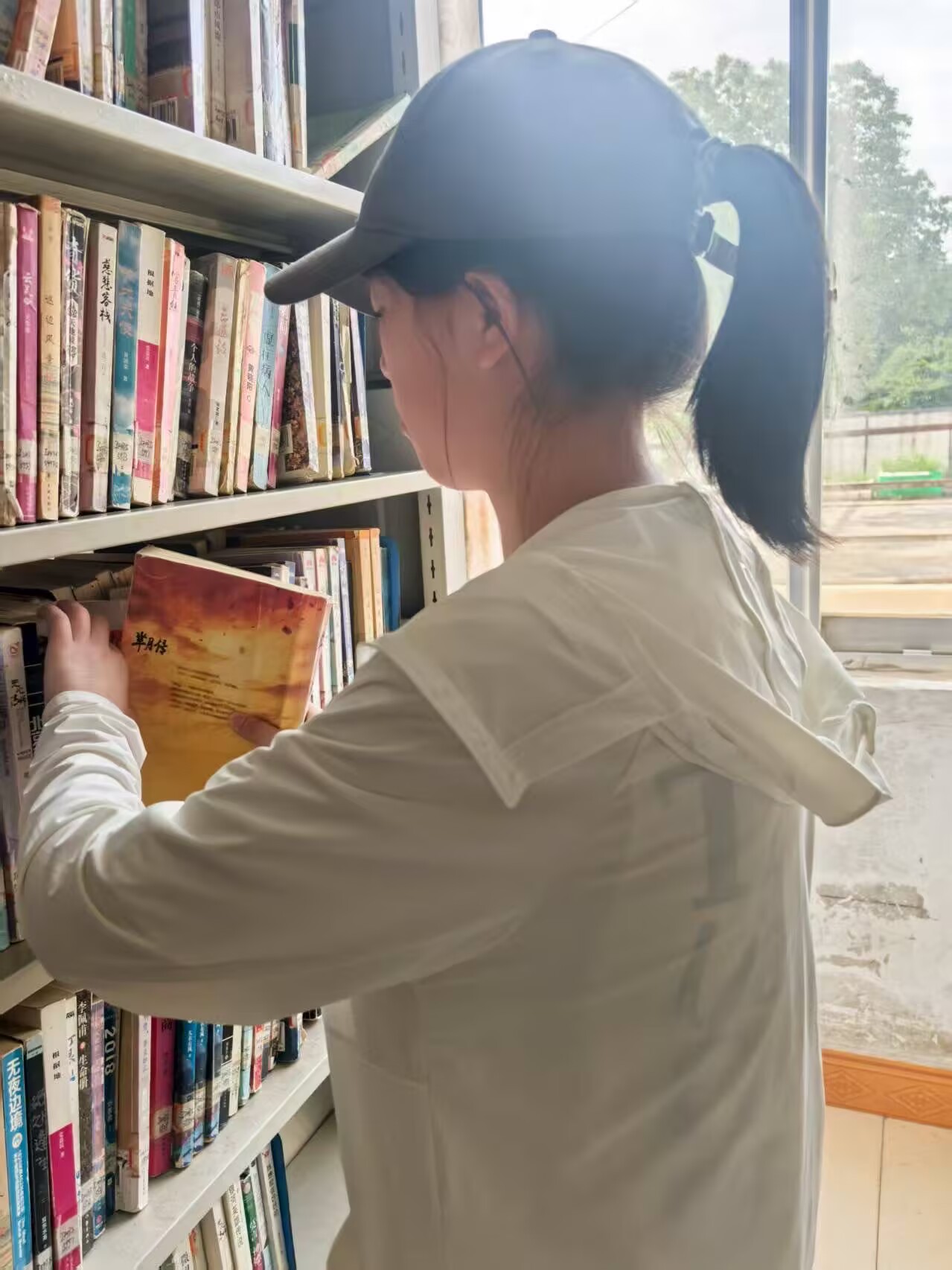 在鄉(xiāng)村幼兒園的實踐之余,鄉(xiāng)野筑夢團的同學們也走進了鄉(xiāng)村圖書館和養(yǎng)老院。圖書館里,書籍的陳舊與雜亂讓人有些驚訝。但成員們沒有抱怨,而是齊心協(xié)力地整理書架、分類圖書。一個有序的圖書館,是鄉(xiāng)村孩子和村民們獲取知識的寶庫。當看到孩子們在整理后的書架前挑選自己喜歡的書籍,靜靜地閱讀時,團隊成員亦能感知到知識的種子似乎在這片土地上悄悄地生根發(fā)芽。