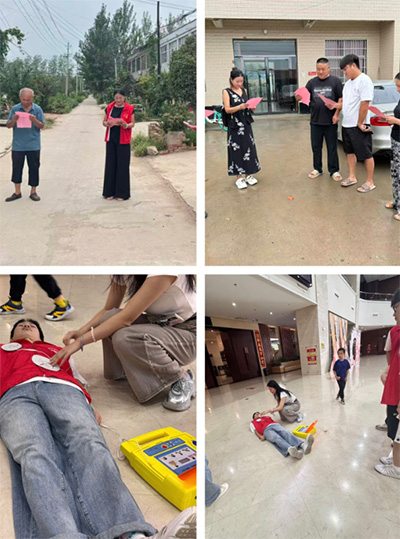 走進(jìn)社區(qū),團(tuán)隊(duì)結(jié)合真實(shí)案例,用通俗語言講解心肺復(fù)蘇(CPR)流程、氣道異物梗阻解除方法,隨后重點(diǎn)講解了自動(dòng)體外除顫儀的使用方法,并積極邀請居民協(xié)助演示。
