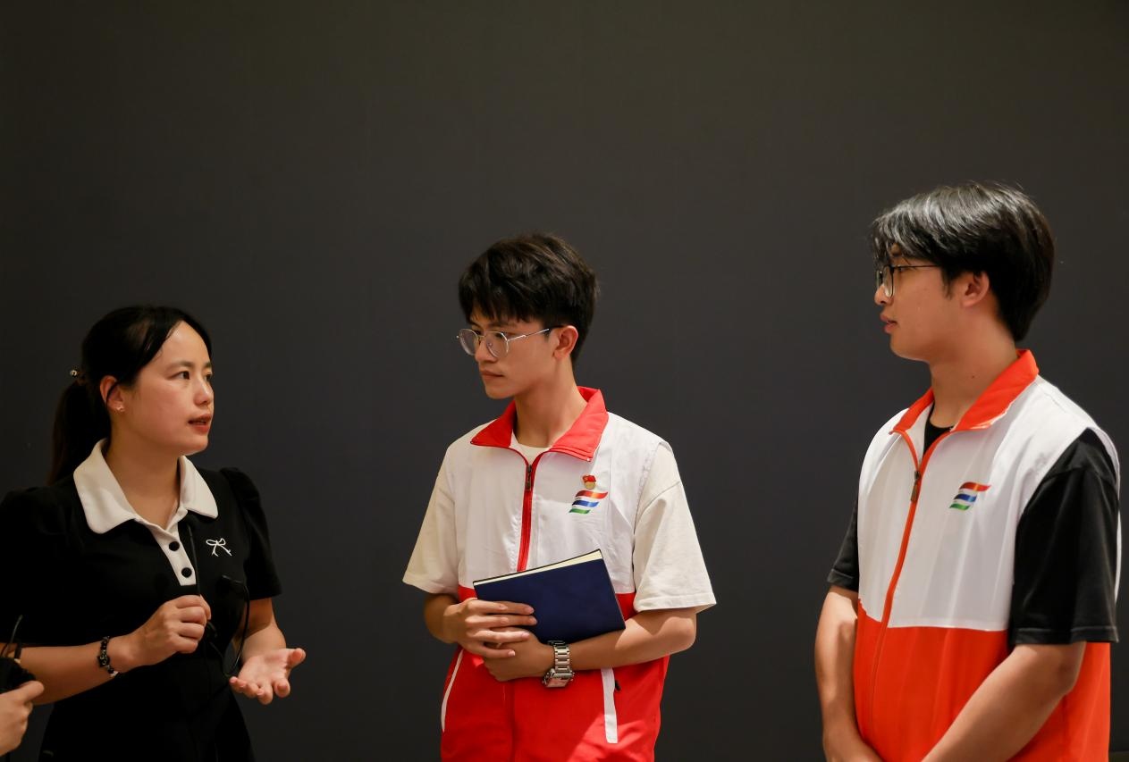 圖為實(shí)踐團(tuán)成員向講解員李林林學(xué)習(xí)