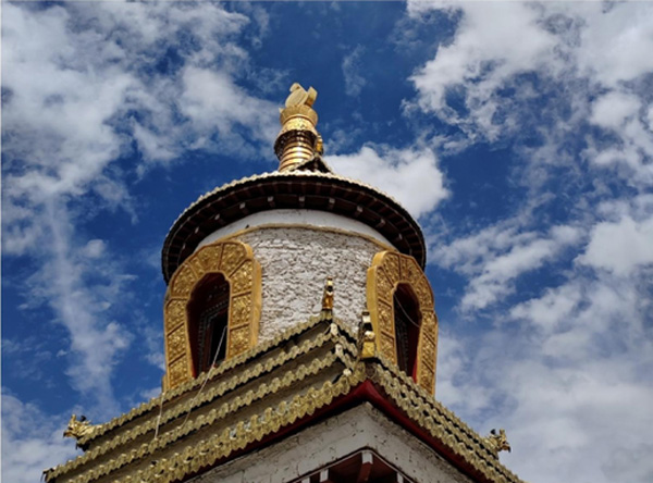 道孚素有“中國(guó)藏民居藝術(shù)之都”,的美稱。團(tuán)隊(duì)走訪觀察到,鎮(zhèn)上的藏式民居外墻體大多以“豬肝紅色”漆料刷制,傳統(tǒng)“崩科”式木制榫卯結(jié)構(gòu)極具特色,道孚木雕技藝毫無保留體現(xiàn)在房屋的門、窗、檐上,盡顯精雕細(xì)琢與鮮明大氣之美。不僅僅是建筑,還有所見的生活用品及精妙的服飾,無不體現(xiàn)當(dāng)?shù)貥O具特色的民族藝術(shù)成果,陽光下的瑪尼石堆和高聳白塔,給人莊嚴(yán)肅穆、寧靜祥和之感。