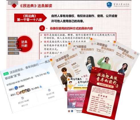 法治迎亞運,青年向前行——普法聯(lián)動看‘浙’里”線上宣講活動,圍繞五大核心內(nèi)容開展法治知識宣傳,分享實踐心得感悟,旨在展現(xiàn)新時代法科生素養(yǎng)。