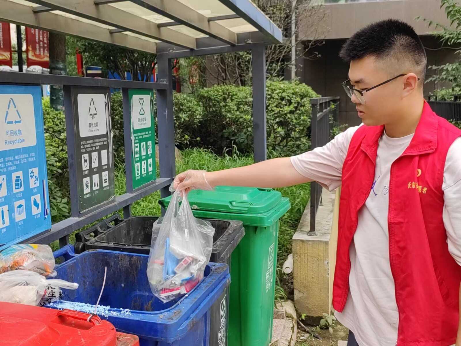 他們采訪社區(qū)工作人員,精準了解社區(qū)垃圾分類開展情況,對其有一個大致,總體上的了解。同時,也采訪了街道辦事處孫主任,對垃圾分類政策有了全面且官方的認知。在對垃圾分類有了全面的考慮與研究后,走進社區(qū)幫助居民實施垃圾分類,在實踐中體會垃圾分類政策對人們的日常生活所帶來的好處。值得一提的是,隨著信息化時代的發(fā)展和進步,智能垃圾分類投放箱順勢而生,整個團隊也學習了使用它們的方法,享受著科技帶給人們的便利與樂趣。