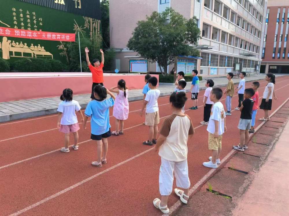 圖為蒲公英支教社會(huì)實(shí)踐團(tuán)隊(duì)成員帶領(lǐng)孩子們熱身。