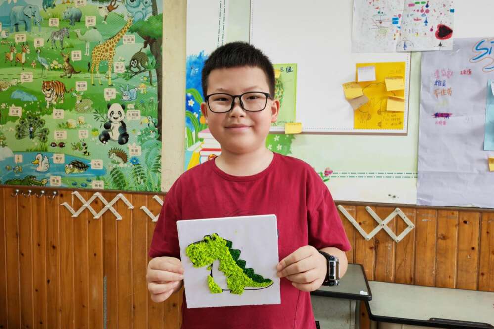 世間萬物,皆可入畫,小朋友們用各色的紙漿和兩根牙簽去制作自己的紙漿畫。具體的制作過程就是簡(jiǎn)單的一個(gè)字——戳,小朋友們用牙簽把紙漿按顏色區(qū)域鋪到畫板上,稍稍按壓,然后用牙簽的尖尖戳出機(jī)理。絕大多數(shù)的小朋友都在規(guī)定時(shí)間內(nèi)完成了自己的作品,大家全部完成后,孩子們將成果并排放在通風(fēng)處,靜靜地等待紙漿風(fēng)干。