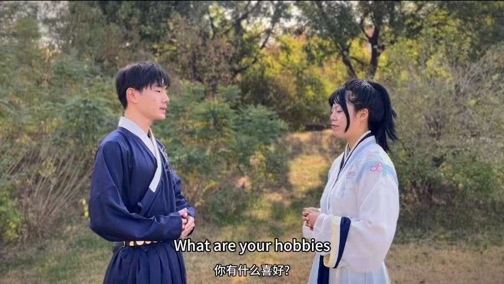 圖為實(shí)踐隊(duì)隊(duì)員情景劇所配雙語(yǔ)字幕 周昊冉 供圖