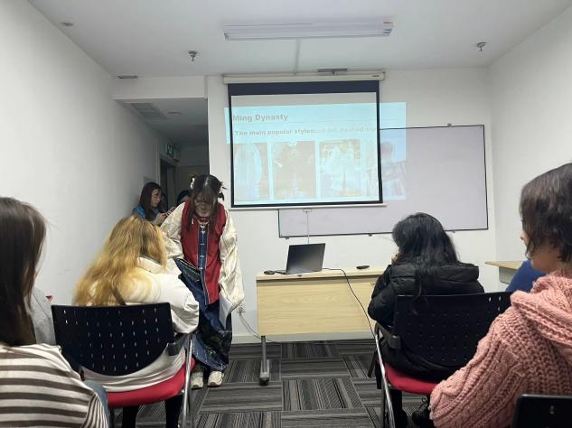 “錦繡華裳映日月,玉佩金鉤耀日輝。”漢服,全稱(chēng)“漢民族傳統(tǒng)服飾”,樣式繁多且美觀大方,深具文化底蘊(yùn)和歷史積淀。它在文化傳承、藝術(shù)審美、禮儀表達(dá)等方面具有極高價(jià)值。漢服文化近年來(lái)日益煥發(fā)生機(jī)活力,逐漸在大眾中重新普及開(kāi)來(lái)。而漢服文化的傳播,不僅要注重國(guó)內(nèi)的縱向發(fā)展,亦要追求國(guó)際化的橫向,以此來(lái)促進(jìn)中外文化交流,增強(qiáng)外國(guó)人對(duì)中國(guó)文化的認(rèn)知和了解,同時(shí)也可以推動(dòng)漢服文化的傳播和發(fā)展。通過(guò)展示漢服,可以讓更多人了解中國(guó)傳統(tǒng)文化和歷史,進(jìn)一步增強(qiáng)文化自信和民族自豪感。此外,漢服作為中國(guó)傳統(tǒng)文化的重要組成部分,具有極高的藝術(shù)價(jià)值和審美價(jià)值,向國(guó)際展示漢服也可以推動(dòng)國(guó)際文化交流和互動(dòng),增進(jìn)中外人民的友誼和合作。趁此之勢(shì),曲阜師范大學(xué)翻譯學(xué)院“譯傳華韻”社會(huì)實(shí)踐隊(duì)于2024年1月22日,在青島市新環(huán)球漢語(yǔ)學(xué)校開(kāi)展了為外國(guó)友人介紹漢服文化、進(jìn)行趣味漢服折紙教學(xué)的活動(dòng)。我們實(shí)踐隊(duì)隊(duì)員們分工明確,齊心協(xié)力,共同為他們展現(xiàn)了漢服的華美風(fēng)采和歷史文化底蘊(yùn),提高了其對(duì)中華文化的認(rèn)知水平。