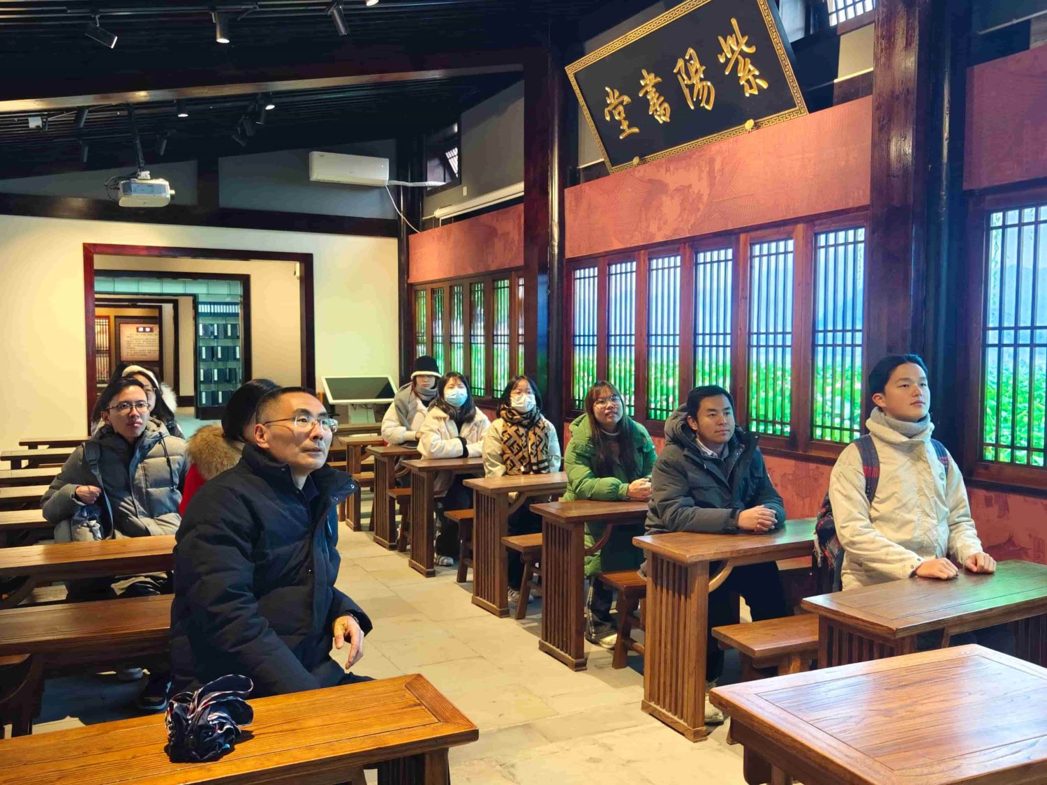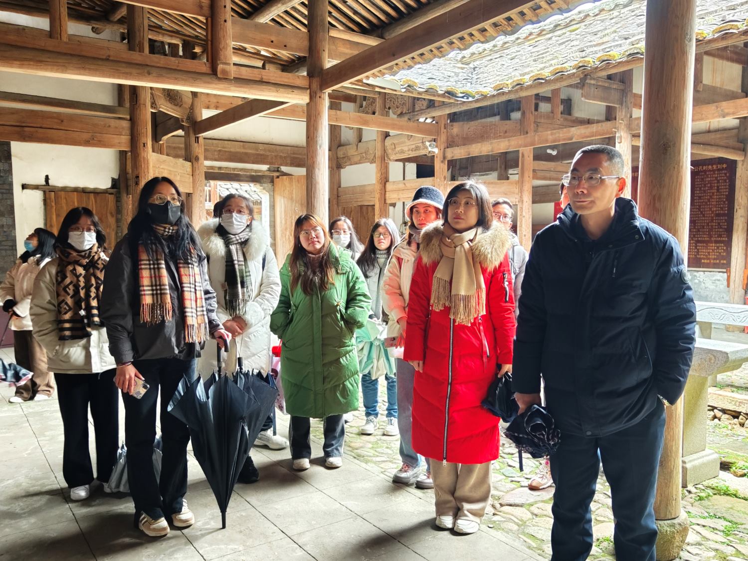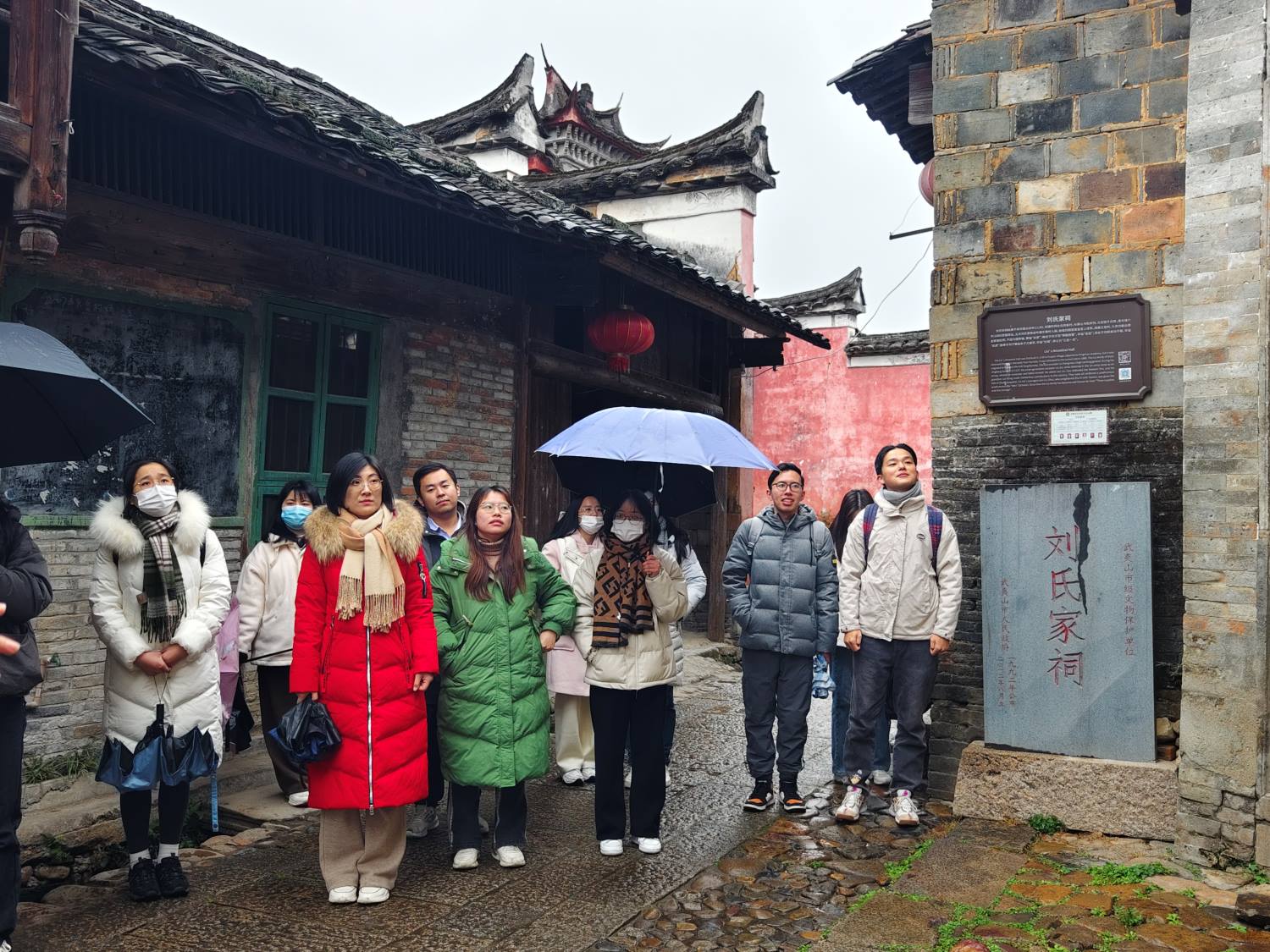 五夫古鎮(zhèn)是朱子理學(xué)的發(fā)源地,朱熹十四歲開始就在五夫定居,度過了他求學(xué)、著述、辦學(xué)、授徒的四十六年歲月。一月底氣溫驟降,五夫古鎮(zhèn)更是飄起了雨夾雪,但這絲毫沒有影響隊員們的前進步伐,他們求知問道的渴望愈加迫切。實踐隊隊員們先后參觀了朱子故里海峽兩岸交流基地交流成果展館、朱子故居紫陽樓、興賢書院、劉氏家祠、朱子雕像,探索博大精深的朱子文化,在此過程中繼承和弘揚中華優(yōu)秀傳統(tǒng)文化,賡續(xù)中華文明血脈。