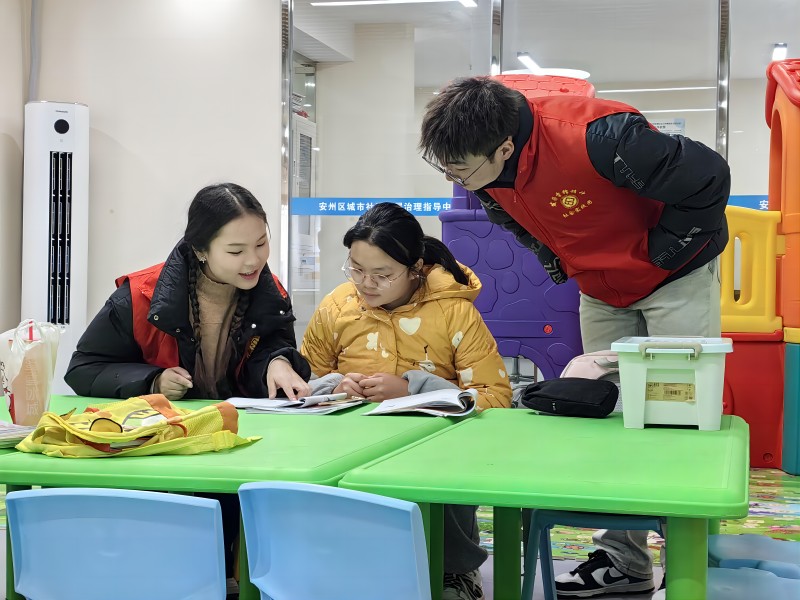 圖為實踐團隊在安州區(qū)城市社區(qū)發(fā)展治理指導(dǎo)中心