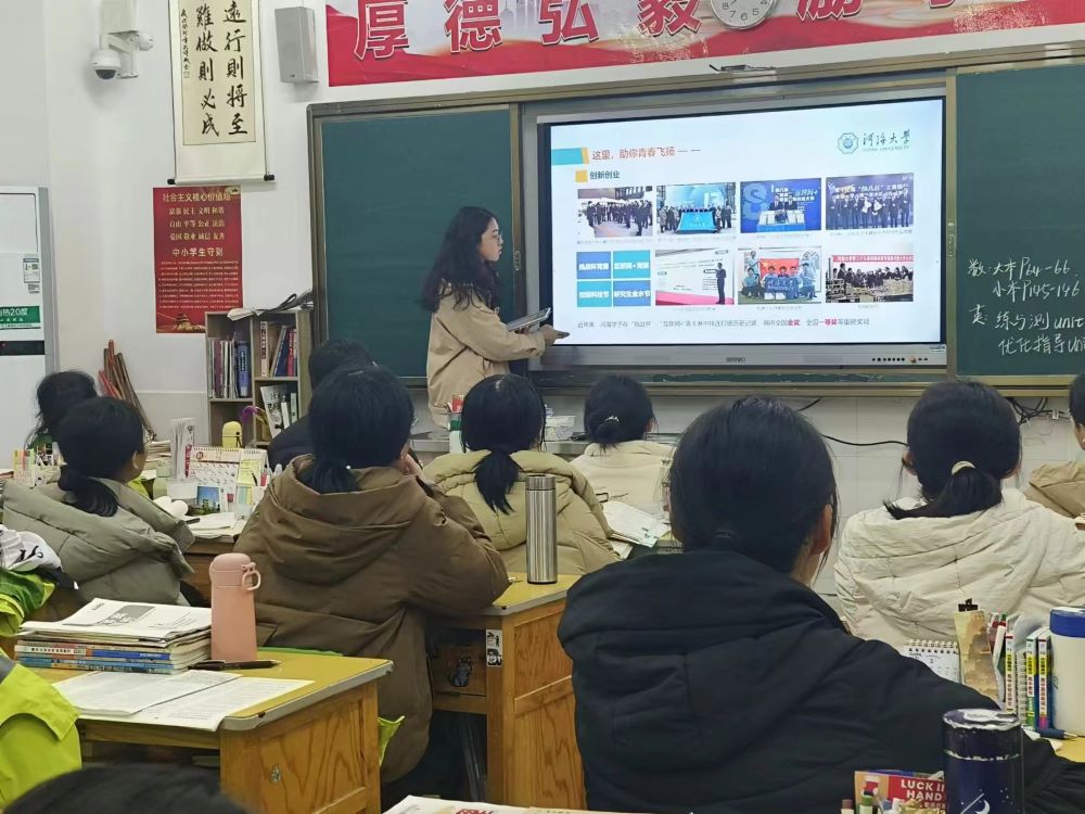 水韻潺潺,潤澤萬物。實踐團成員來到高三年級,以走班宣講的形式展開分享。實踐團首先在各班級播放了河海大學2023年招生宣傳視頻——《潤·澤》。生動的畫面和情感充沛的音樂,使得“潤萬物,澤河海”的理念深入人心。同學們對河海大學有了初步的了解,也對未來大學生活充滿了向往。接下來,實踐團通過宣講PPT全面介紹了河海大學的百年校史、辦學特色、招生專業(yè)以及校園環(huán)境等信息。通過豐富的圖文展示,同學們逐一了解了河海大學豐富的歷史底蘊和卓越成就。校園的獨特氛圍、辦學理念、教育資源以及專業(yè)設置等方面的詳細介紹,使同學們對河海大學有了更為清晰的認識。在宣講環(huán)節(jié)結束后,團隊成員積極與同學們互動,耐心解答了同學們提出的各種問題。此外,團隊成員還留下了個人聯(lián)系方式,在線上為同學們答疑解惑。同學們紛紛就學校生活、招生政策、專業(yè)選擇等方面提出了疑問,而團隊成員們則以耐心和細致的態(tài)度一一解答,為學生提供了更為全面和個性化的指導。這樣的交流不僅拉進了實踐團與同學們之間的距離,也有助于同學們解決大學選擇與報考過程中的疑慮,不少同學表達了自己對河海大學的向往,表示自己將珍惜剩下的高中時光,為考上理想學府不懈努力。