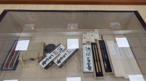 一來到這里,實踐隊員就被濃厚的書法氛圍所震撼,隨處可見的書法石碑,展覽柜里數(shù)不勝數(shù)的大家之作,飄如游云,矯若游龍。經(jīng)過古色古香的園林建筑,實踐隊員來到了晉墨坊。晉墨坊是張?zhí)m波先生為推廣非遺瑯琊古墨,讓更多人體驗其獨特之處所創(chuàng)立的。傳承人將瑯琊古墨的非遺文化與時代相結合,走上了市場化、產(chǎn)業(yè)化發(fā)展的道路。晉墨坊琳瑯滿目的古墨產(chǎn)品、濃郁醇厚的古墨氣息讓實踐隊員近距離感受了其中蘊含的魅力。傳承人立志要將古墨工藝發(fā)揚光大,在研究明清兩代古墨配方的同時不斷推陳出新,加入了高科技技藝和現(xiàn)代工藝,結合當代書寫特點,相繼開發(fā)出沂州古墨、云中燕墨錠、北太墨汁等產(chǎn)品。不僅在全國熱銷,還遠銷至馬來西亞、日本、韓國等國家。適應了時代發(fā)展的瑯琊古墨,煥發(fā)出了全新的光彩。