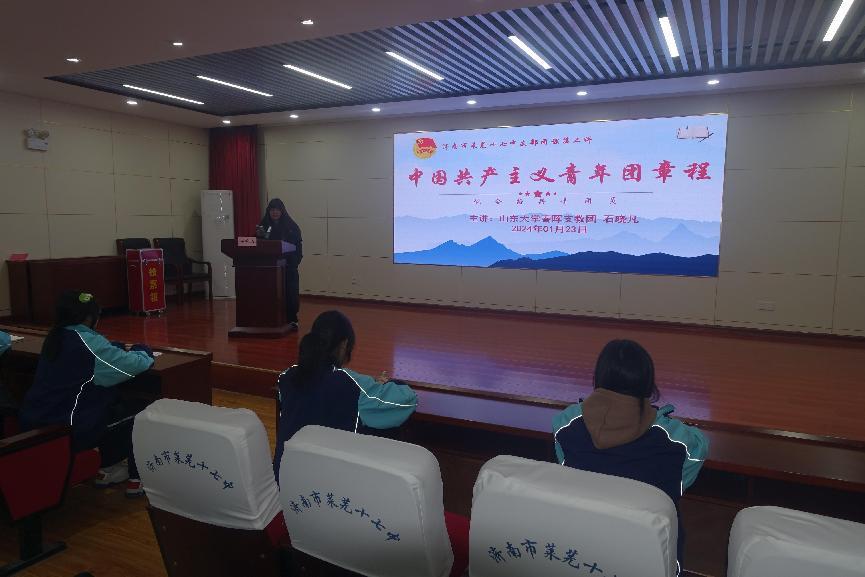 隊員石曉凡進行了中國共青團章程的講解團課,在黨的二十大號召下,共青團員應當不斷深入學習習近平新時代中國特色社會主義思想,堅持社會主義核心價值觀,將其內(nèi)化于心、外化于行,為培養(yǎng)社會主義事業(yè)接班人而不斷加強思想精神建設。