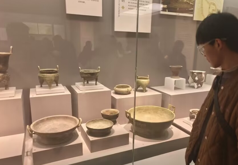 圖為實(shí)踐隊(duì)員觀看唐朝青銅器。中國青年網(wǎng)通訊員 陳文睿 攝