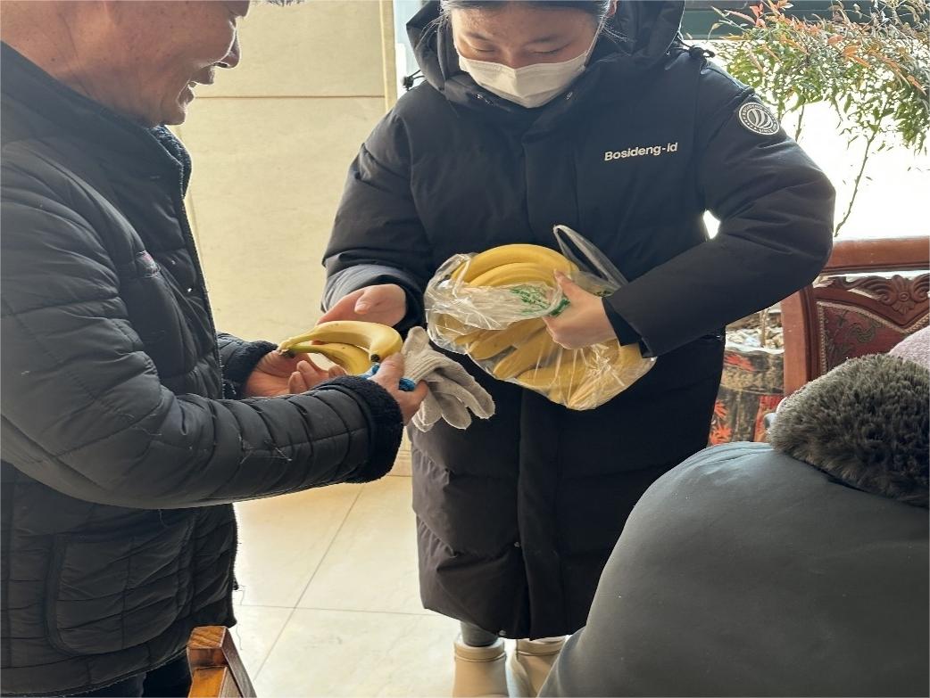 圖為實(shí)踐隊(duì)員為老人們分發(fā)自購的香蕉。 通訊員 姚敏敏 攝